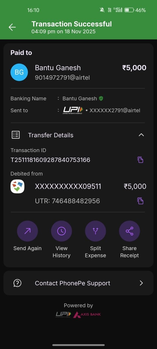 1. BC GAME DEPOSIT FRAUD I have been facing a serious issue with a deposit that was successfully paid from my side but has not been credited to my BC.Game account. I have provided every proof possible, yet I have received no resolution or meaningful support. Deposit Issue Details BC Game ID: 23673402 Amount: 5000 INR UTR: 746488482956 Order ID: F-1849124268515951759 TxID: 4481324 Date & Time: 18/11/2025, 16:08:42 Status Shown on BC.Game: Canceled Credited Amount: 0 INR What Actually Happened I paid 5000 INR successfully through UPI. The amount was debited from my bank account. I have attached: Bank statement Payment confirmation screenshots Video proof of the transaction After creating a support ticket, it was canceled automatically, with no help provided. I contacted the merchant, and they confirmed they received the payment, but said I must contact BC.Game support for the credit. Unfortunately, BC.Game support: Provides only automated bot replies Does not offer any human assistance Does not respond to emails at [email protected] Leaves tickets pending for long periods with no action Why I Am Posting Here I have exhausted all official support channels: Live chat only replies with repetitive bot responses Email support has not responded for a long time Discord moderators simply redirect users back to the live chat bot In this case, the system clearly shows a deposit failure, but the amount was successfully received by the merchant, and all proof from my side is genuine and already submitted. I am requesting a manual review of this transaction, as this is serious and concerns real money lost due to system failure. Request Please review my transaction manually and credit the deposit amount to my account, or process a refund if crediting is not possible. All data, screenshots, and video proof can be re-submitted if needed. I hope this issue can be resolved professionally and promptly. Thank you. Merchant Name: Bantu Ganesh